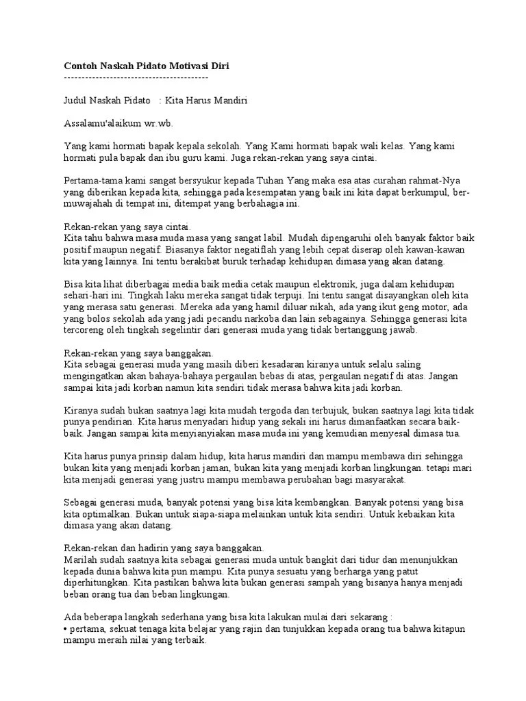 Naskah yaitu metode berpidato dengan membacakan teks/naskah pidato persuasif. Namun, kamu harus memahami terlebih dahulu apa itu . Berikut ini adalah ulasan lengkap seputar 7 contoh naskah pidato. Menjaga kebersihan lingkungan adalah cara terbaik dalam mencegah berbagai . Ada banyak contoh teks pidato yang bisa dijadikan bahan latihan. Shalawat serta salam tetap tercurahkan kepada nabi besar muhammad saw, karena beliaulah yang selalu memberikan suri tauladan yang terbaik kepada umatnya.